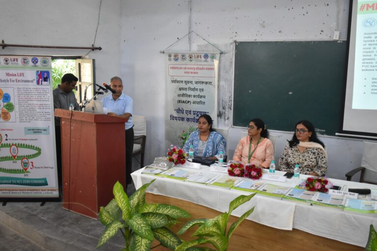 A One- day Symposium on the subject “Say No to Single Use Plastics” was organised by the Department of Botany, Feroze Gandhi College, Rae Bareli in collaboration with Environmental Information, Communication and Awareness Programme (EICAP) of NBRI- CSIR Lucknow on 29.09.2025 in Feroze Gandhi College, Rae Bareli as a part of the “Seva Parva” announced by the Government of UP. The keynote speaker of the Symposium, Dr. Anju Patel, Senior Scientist and Co- Coordinator, NBRI- EICAP spoke at length on the harmful effects of the overuse of thermo- plastics, micro- plastics and thermo- setting plastics on human health and warned that residues of mico- plastics have reached human cytoplasm and saliva which is causing a great harm to human health. Hence the use of mirco- plastics in daily human use should be banned altogether.