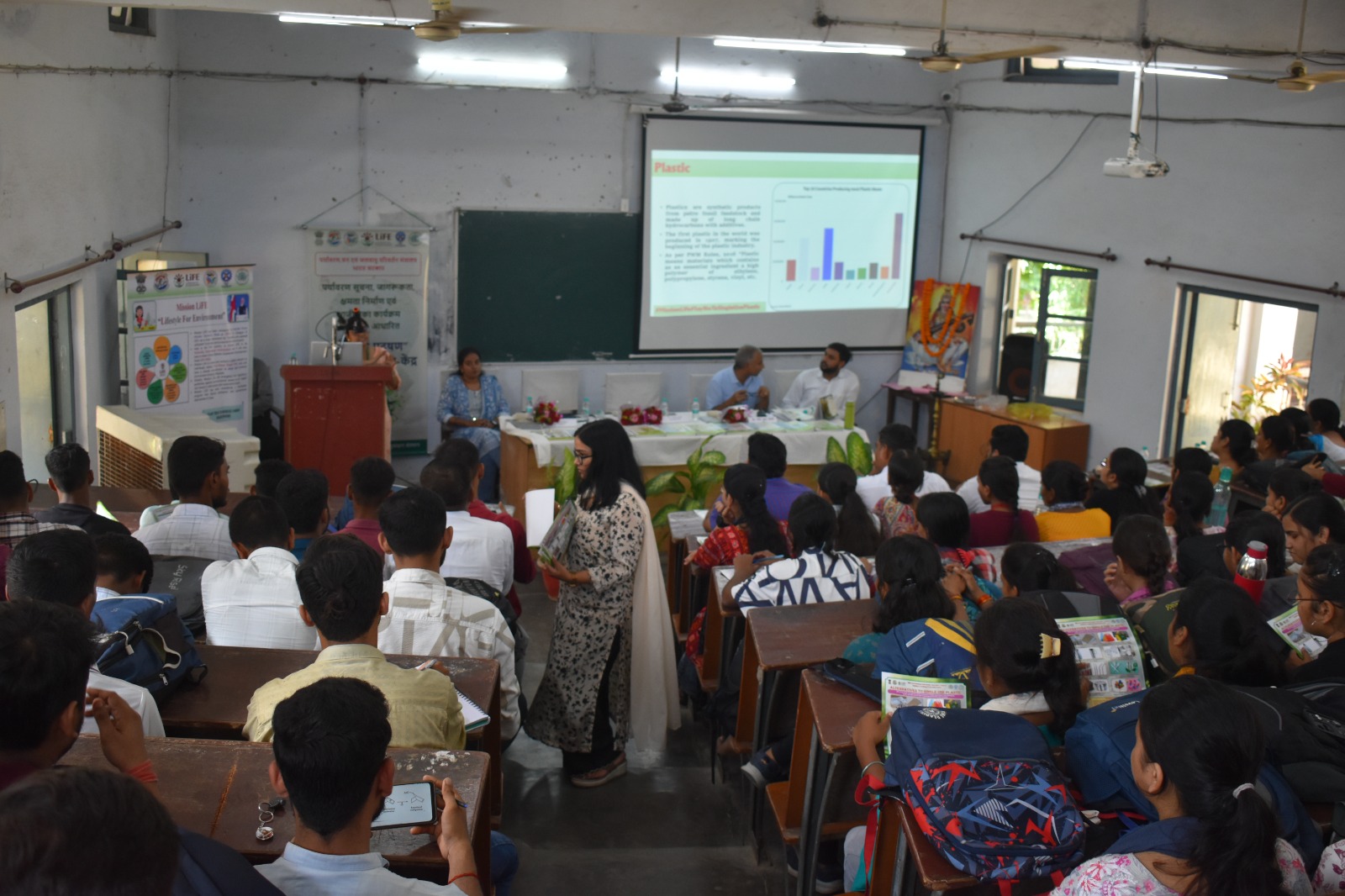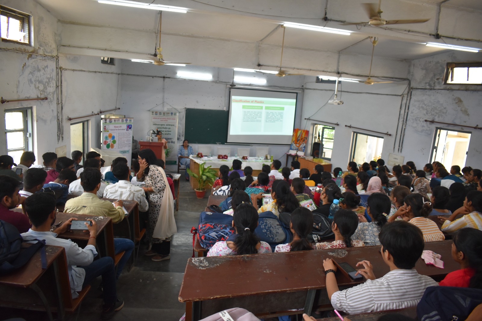 The guest speaker, Dr. Vartika Singh threw light on the Green Planner App, Mission Life, need for the conservation of energy and water, importance of planting ‘neem’, aloe vera, indoor plants etc for arresting environmental degradation. The Programme Coordinator, Dr. Sandhya Mishra organised the Quiz programme and prize distribution ceremony. Prof. Manoj Kumar Tripathi, Principal of the College delivered a very informative and scholarly address as the Chief Guest of the Symposium and threw light on the origin of plastics, the harmful effects of the overuse of plastics and the ways and methods of reducing the use of harmful plastics.