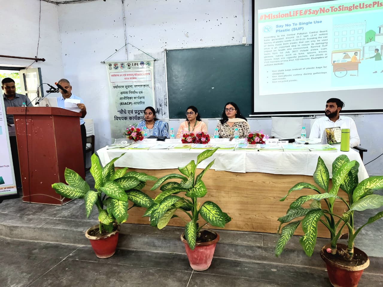 A One- day Symposium on the subject “Say No to Single Use Plastics” was organised by the Department of Botany, Feroze Gandhi College, Rae Bareli in collaboration with Environmental Information, Communication and Awareness Programme (EICAP) of NBRI- CSIR Lucknow on 29.09.2025 in Feroze Gandhi College, Rae Bareli as a part of the “Seva Parva” announced by the Government of UP. The keynote speaker of the Symposium, Dr. Anju Patel, Senior Scientist and Co- Coordinator, NBRI- EICAP spoke at length on the harmful effects of the overuse of thermo- plastics, micro- plastics and thermo- setting plastics on human health and warned that residues of mico- plastics have reached human cytoplasm and saliva which is causing a great harm to human health. Hence the use of mirco- plastics in daily human use should be banned altogether.