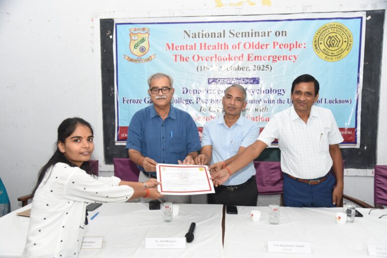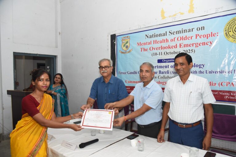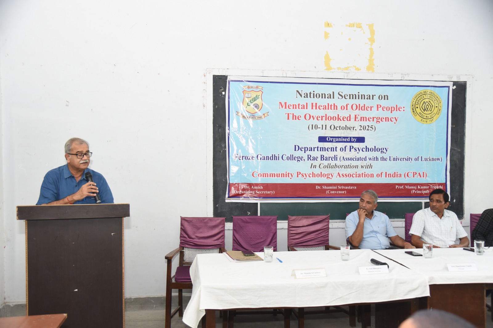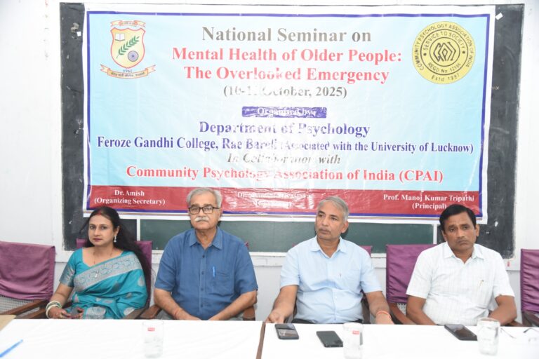 3. Two- day National Seminar on “Mental Health of Older People: The Overlooked Emergency” organized by the Department of Psychology, Feroze Gandhi College, Rae Bareli in collaboration with the Community Psychology Association of India- 10.10.2025 and 11.10.2025.