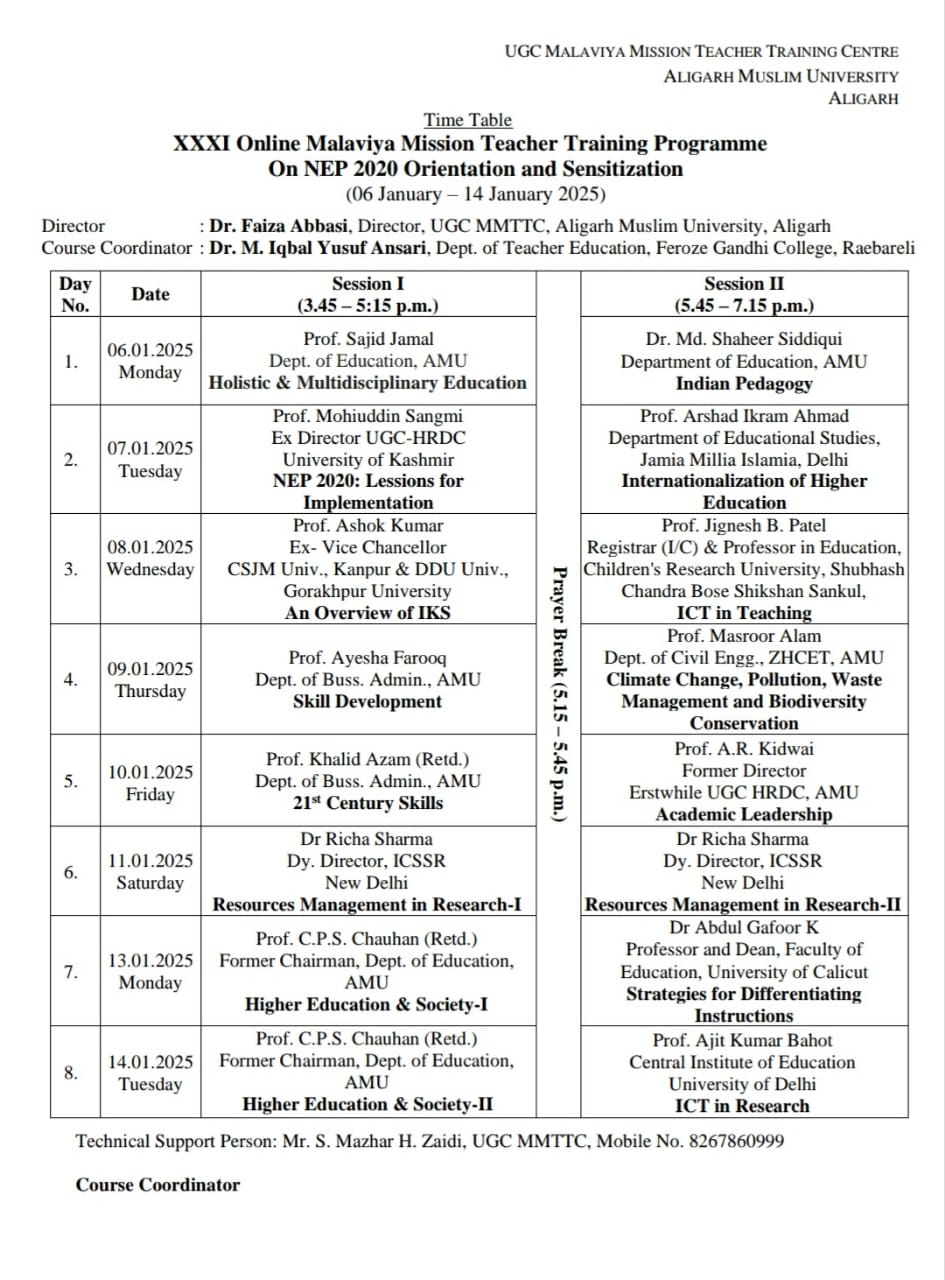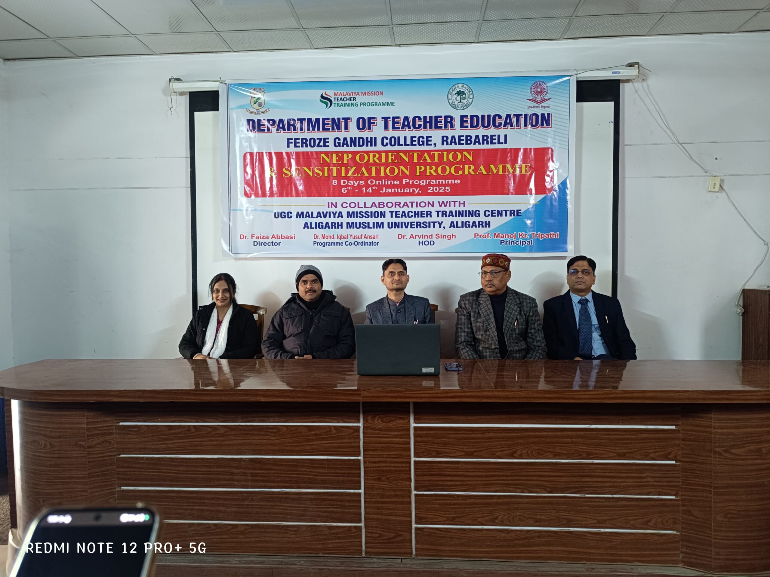 1. Online 'NEP 2020 Orientation and Sensitisation Programme' jointly organised by the Department of Teacher Education, Feroze Gandhi College, Rae Bareli and Malviya Teacher Training Mission, Aligarh Muslim University, Aligarh- 06.01.2025 to 14.01.2025.